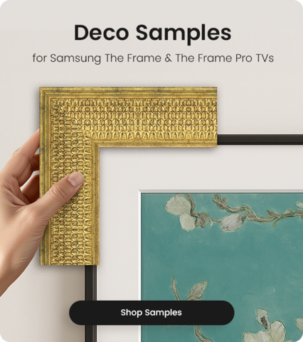 Deco TV Frames is an official partner of Samsung as a trusted retailer with the largest and most diverse selection of premium frames built exclusively to fit Samsung The Frame televisions. We offer a wide range of bold and exquisite frames that fit all sizes of Samsung The Frame and Frame Pro TV models on the market today. Select from our many different frame collections to turn your Samsung The Frame TV into the compelling centerpiece of any room in your home or office.